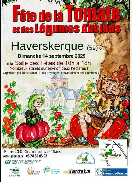 Pour dimanche 14 septembre 2025, à l'occasion de la Fête de la tomate et des Légumes anciens, randonnée de 11 kms (plat) à Haverskerque. Départ 9 h place de l'église ou pour le covoiturage, 8h25 parking du week-end